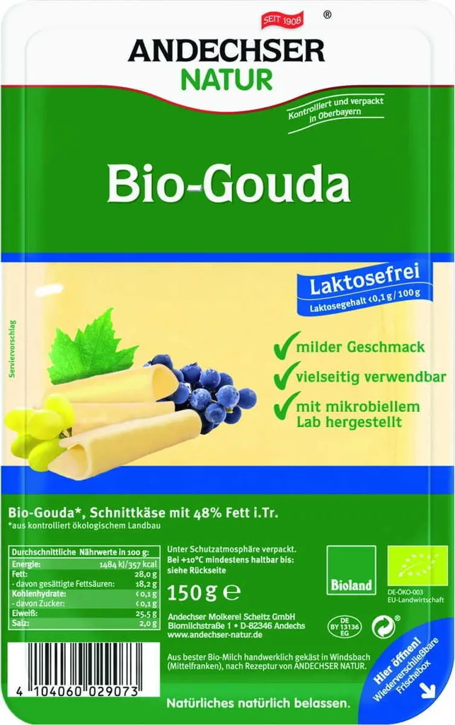 Gouda-Käsescheiben 48% Laktosefrei150 G Andechser Natur