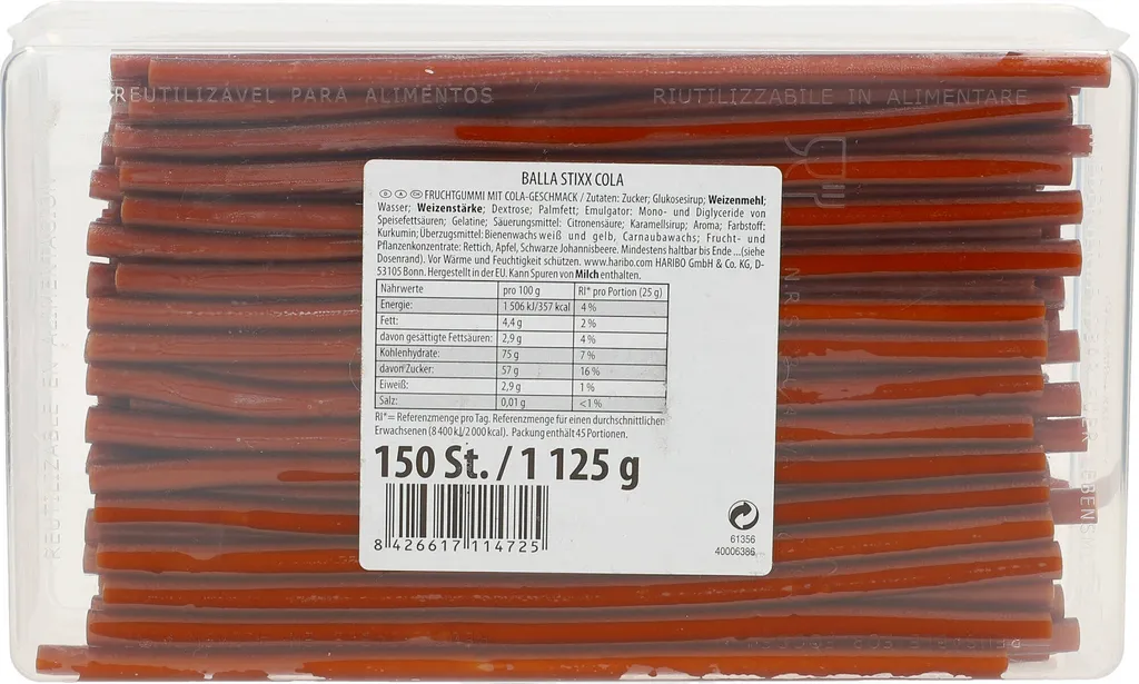 Haribo Balla Stixx Cola 150 Konfektstangen Mit Colageschmack 1125g