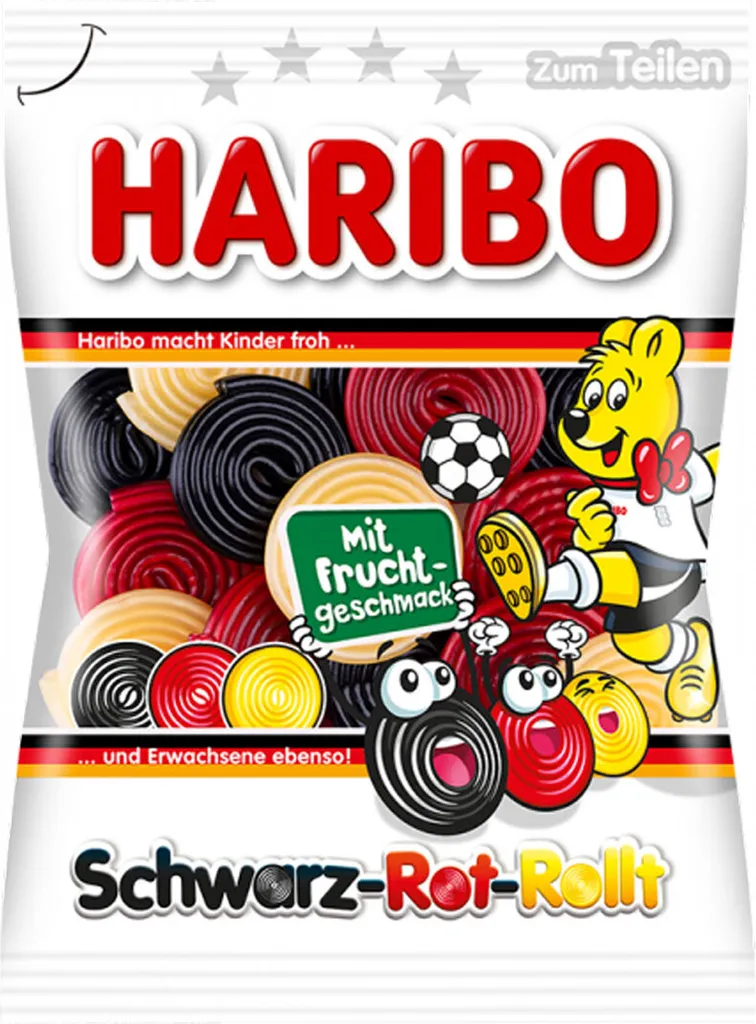 Haribo Schwarz Rot Rollt Fruchtschnecken Mit Brausefüllung 175g