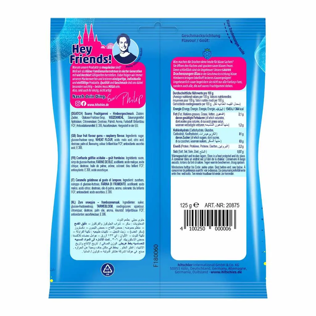 Hitschies Saure Drachenzungen Blau Fruchtig Saures Fruchtgummi 125g