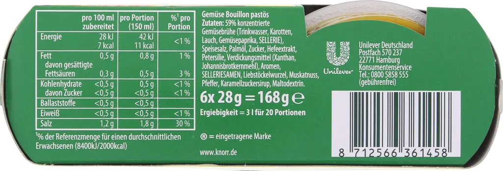 Schreibe die erste Rezension für „Knorr Bouillon Pur Gemüse 6x28g“ Antwort abbrechen