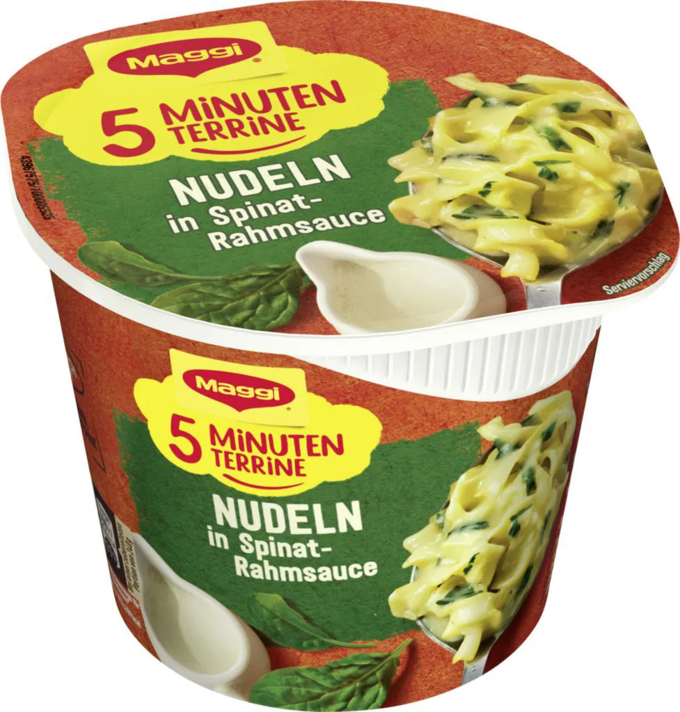Maggi 5 Minuten Terrine Nudeln In Cremiger Spinat Rahmsauce 50g