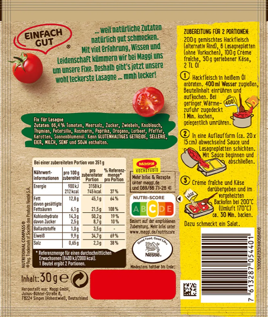 Maggi Fix Für Lasagne Würzig Tomatig Natürliche Zutaten 30 G
