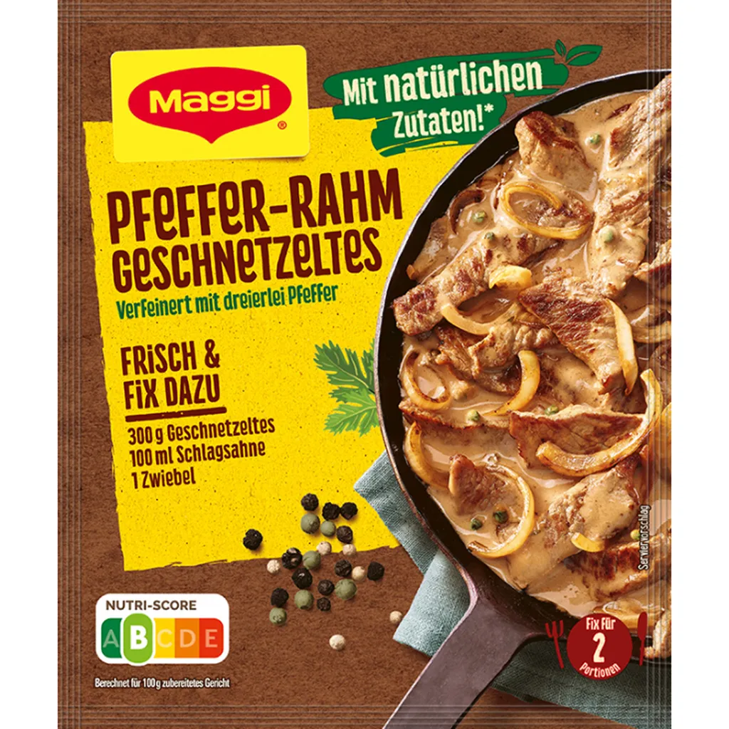 Maggi Fix Für Pfeffer Rahm Geschnetzeltes Mit Dreierlei Pfeffer 27g