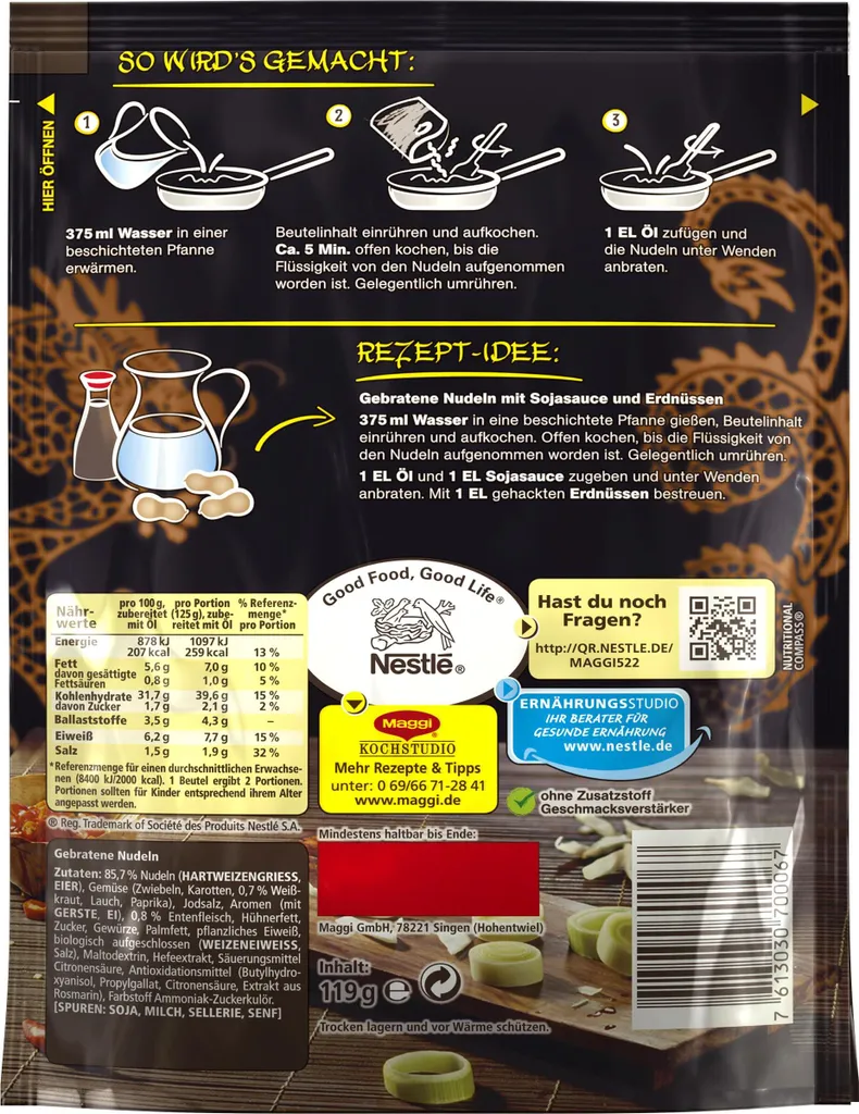 Maggi Gebratene Nudeln Ente Asiatisch Gewürzt Für 2 Portionen 119g