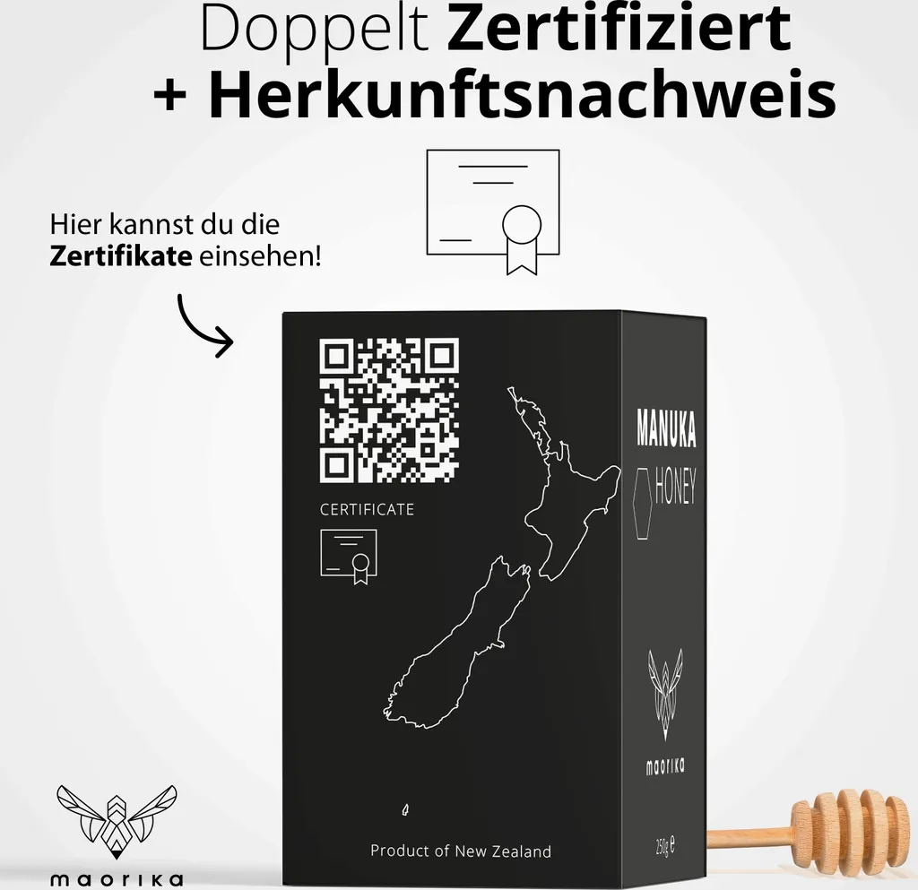 Manuka Honig 250 MGO + 250g Im Glas (lichtundurchlässig, Kein Plastik) Original Aus Neuseeland Maorika
